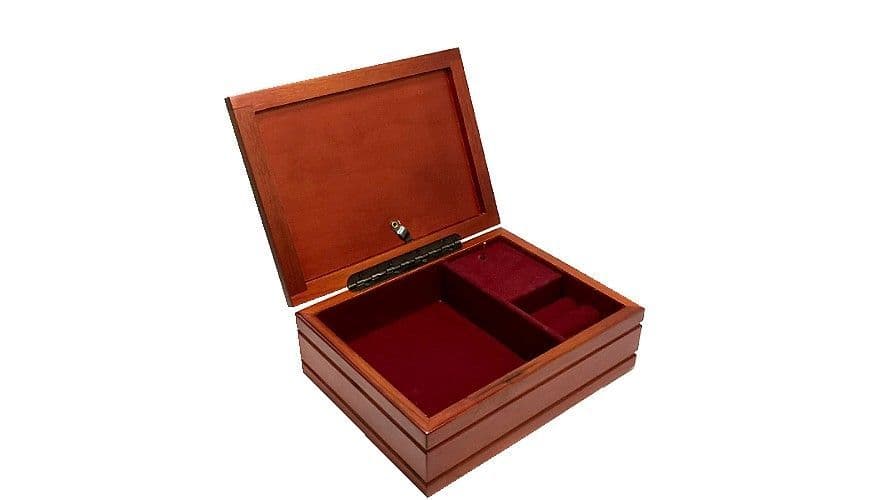 This pretty wooden music box is a really great gift for those wishing to personalise a music box. The lid of the music box is actually a photo frame so that you can insert a photograph or picture of your choice. Inside the box there is space for trinkets, keepsakes or even rings as there is a padded slot for these. The musical movement is fitted inside the box so that when the lid of the musical jewellery box is lifted the music plays, and then when the lid is closed the music shuts off. The musical movement plays the tune 'Loreley'. This wood box is stained in a brown satin finish. Our picture shows a sample photograph and is for information only as you will need to insert your own picture / photograph.